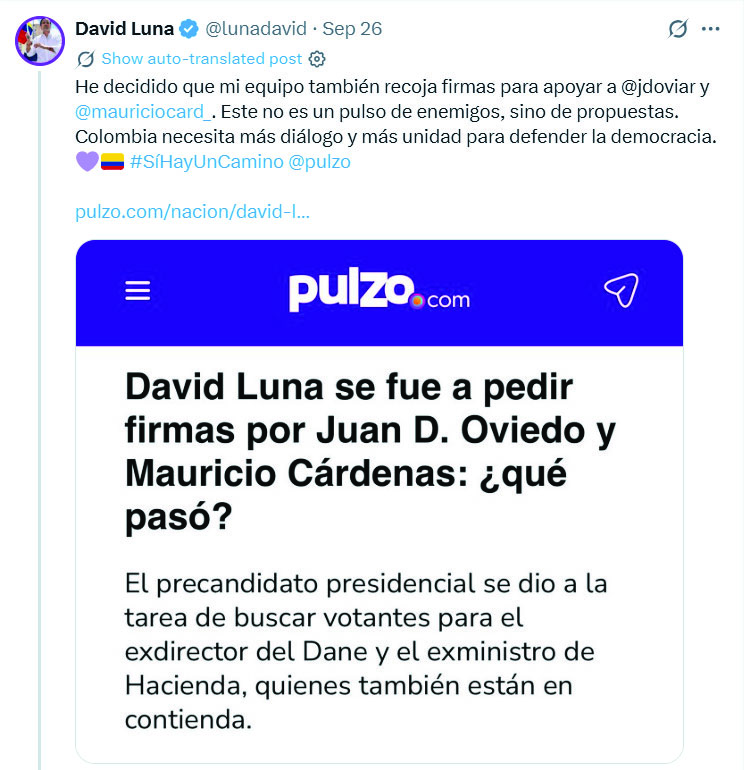 El reciente anuncio de David Luna, ex senador de Cambio Radical, sobre la decisión de poner a su equipo a recoger firmas para apoyar a Juan David Oviedo y a Mauricio Cárdenas ha generado un profundo rechazo ciudadano.